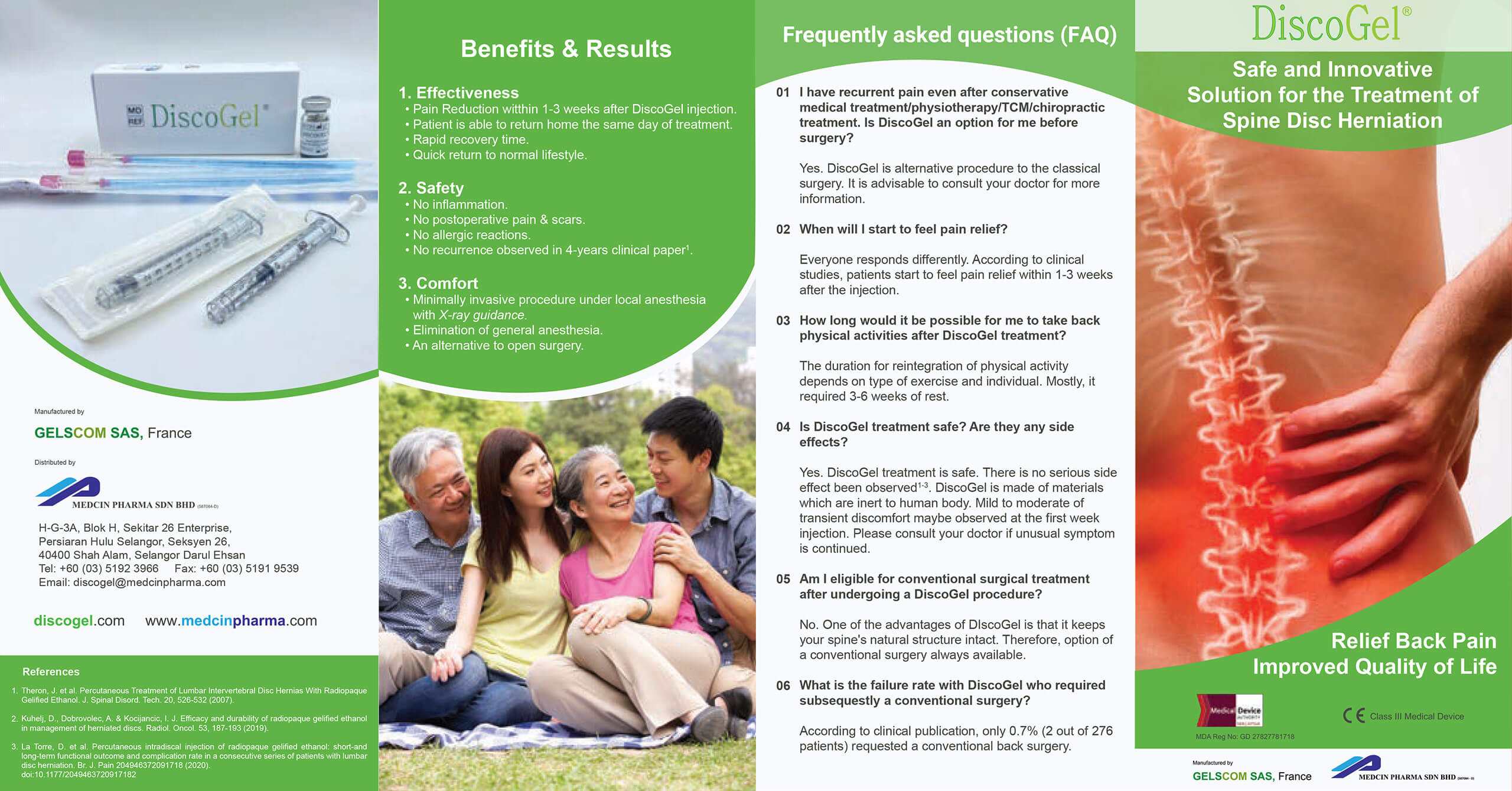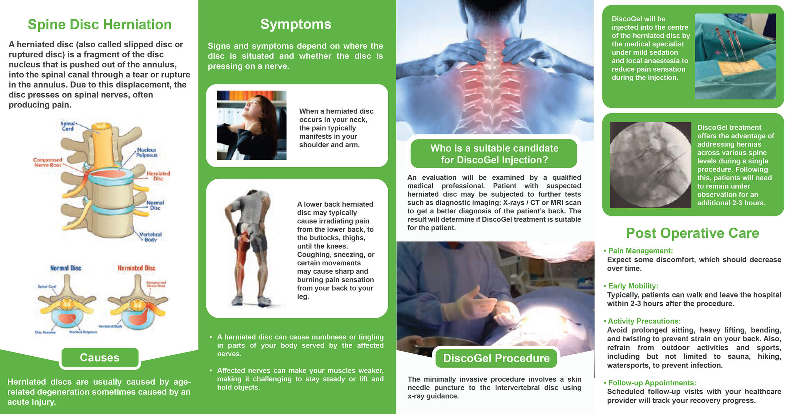 Discogel is a safe and innovative solution for the treatment of spine disc herniation. A minimally invasive solution for the treatment of cervical, thoracic, and lumbar herniated discs under local anaesthesia.